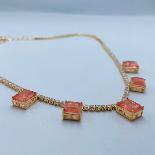 Gargantilla con Cristal Verde- Baño de Oro 18K