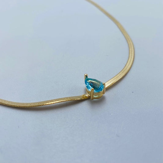 Gargantilla con Cristales Azules- Baño de Oro 18K