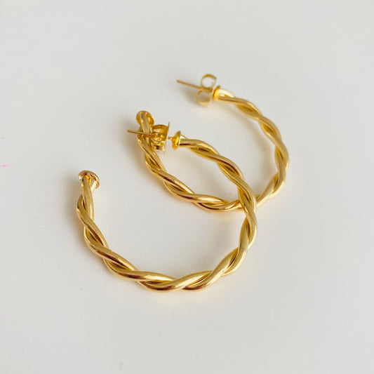 Aretes Ojo Griego con Cadenitas- Baño de Oro 18k