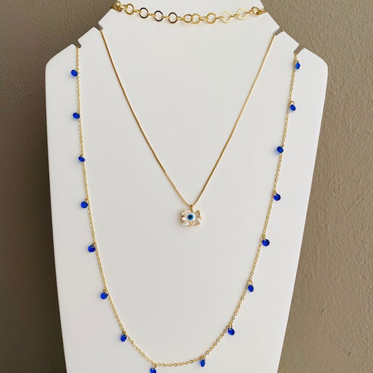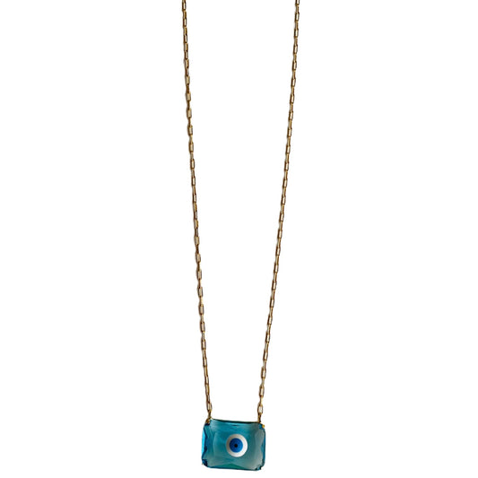 Collar Ojo Rectangular Azul-Baño de Oro 18K
