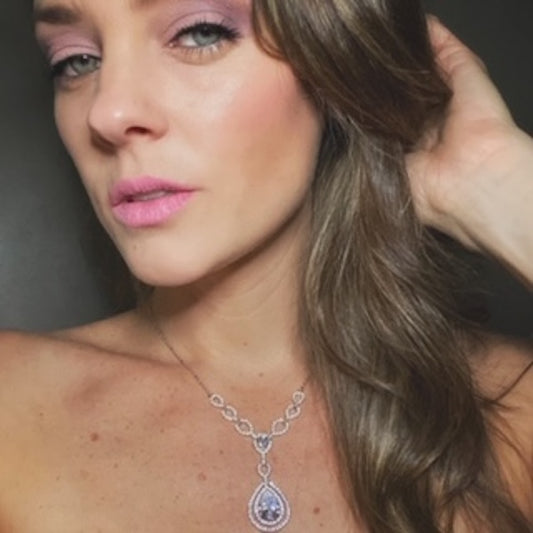 Collar Cristales Transparentes- Baño de Rodio