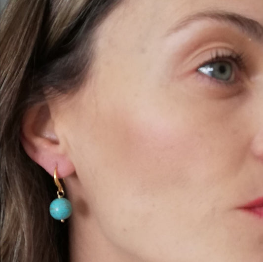 Aretes Piedra Howlita Azul-Baño de Oro 18K